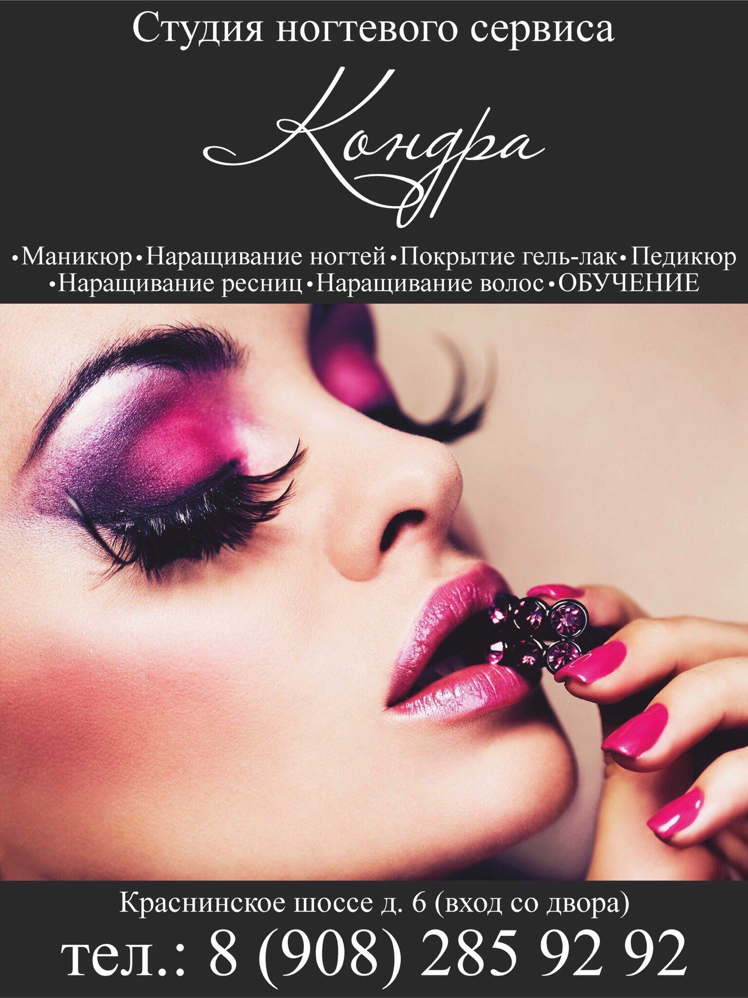 Услуги: Ногтевой сервис Наращивание ногтей Коррекция волос i 3 ч. от 4000 руб. Маникюр Аппаратный маникюр 1 ч. от 500 руб. Классический педикюр i 1 ч. 30 мин. от 900 руб. Коррекция ногтей i 2 ч. от 1200 руб. Наращивание волос i 3 ч. от 4000 руб. Наращивание ногтей i 2 ч. от 1400 руб. Покрытие Shellac i 2 ч. от 1000 руб.